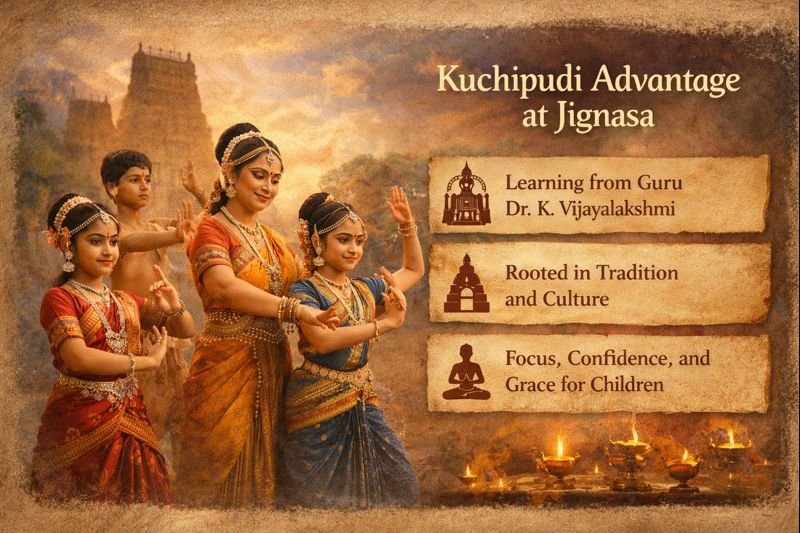 Parents interested in Kuchipudi classes for kids in Nallagandla or Hyderabad are welcome to explore our program and experience how classical dance can shape confidence, grace, and artistic understanding at Jignasa.